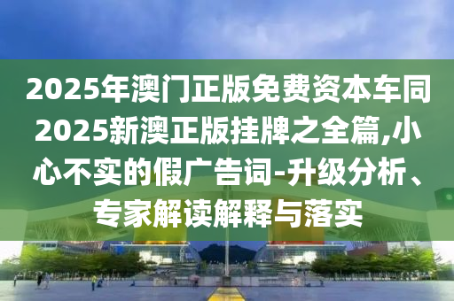 2025年澳門正版免費資本車同2025新澳正版掛牌之全篇,小心不實的假廣告詞-升級分析、專家解讀解釋與落實