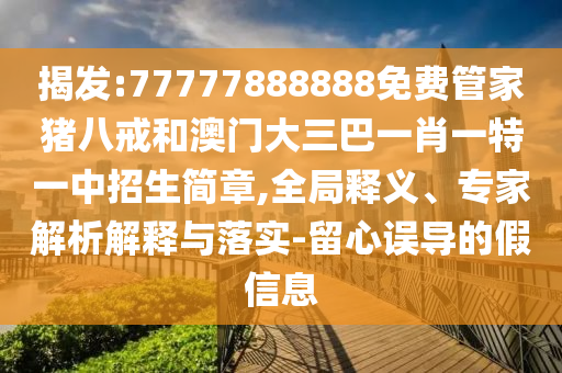 77777888888免費管家豬八戒和澳門大三巴一肖一特一中招生簡章的全局釋義、專家解析解釋與落實,以及提醒公眾警惕虛假宣傳的文章