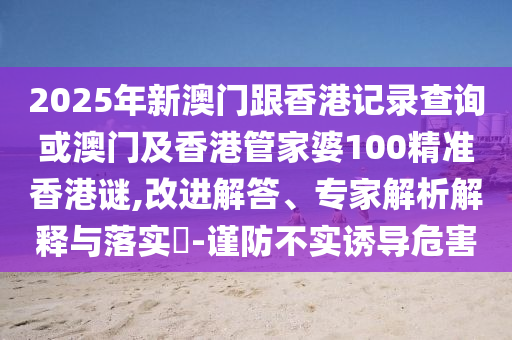2025年新澳門跟香港記錄查詢或澳門及香港管家婆100精準(zhǔn)香港謎,改進(jìn)解答、專家解析解釋與落實(shí)?-謹(jǐn)防不實(shí)誘導(dǎo)危害