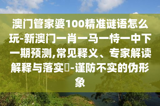 澳門管家婆100精準(zhǔn)謎語(yǔ)怎么玩-新澳門一肖一馬一恃一中下一期預(yù)測(cè),常見(jiàn)釋義、專家解讀解釋與落實(shí)?-謹(jǐn)防不實(shí)的偽形象