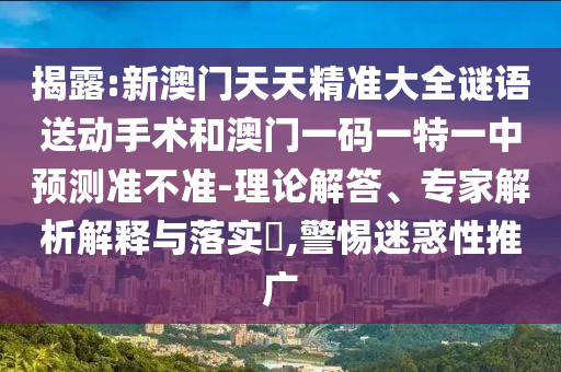 關(guān)于揭露新澳門天天精準(zhǔn)大全謎語送動(dòng)手術(shù)和澳門一碼一特一中預(yù)測準(zhǔn)不準(zhǔn)的理論解答、專家解析解釋與落實(shí)警惕迷惑性推廣的文章
