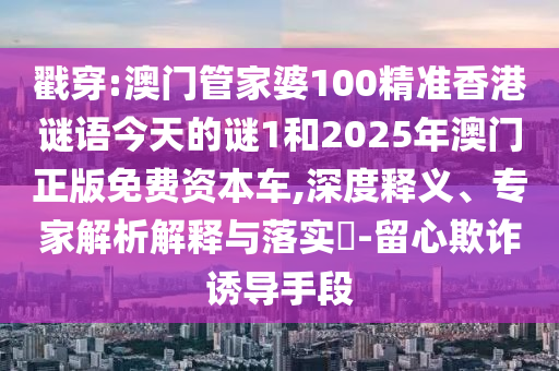 戳穿:澳門(mén)管家婆100精準(zhǔn)香港謎語(yǔ)今天的謎1和2025年澳門(mén)正版免費(fèi)資本車(chē),深度釋義、專家解析解釋與落實(shí)?-留心欺詐誘導(dǎo)手段