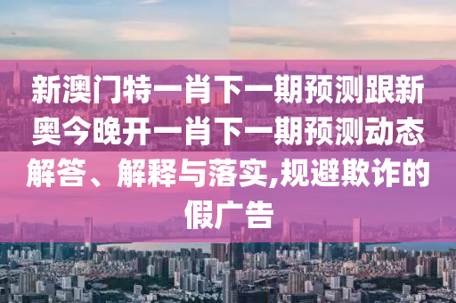 隨著科技的進步和社會的發(fā)展,網絡信息的傳播速度越來越快,各種預測、占卜等話題也愈發(fā)受到關注,我們也應警惕其中摻雜的虛假宣傳與欺詐行為,本文將圍繞“新澳門特一肖下一期預測”和“新奧今晚開一肖下一期預測”等關鍵詞進行動態(tài)解答、解釋與落實,旨在幫助公眾理性看待相關話題,防范欺詐的假廣告。
