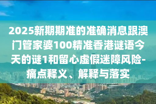 2025新期期準(zhǔn)的準(zhǔn)確消息跟澳門管家婆100精準(zhǔn)香港謎語今天的謎1和留心虛假迷障風(fēng)險(xiǎn)-痛點(diǎn)釋義、解釋與落實(shí)