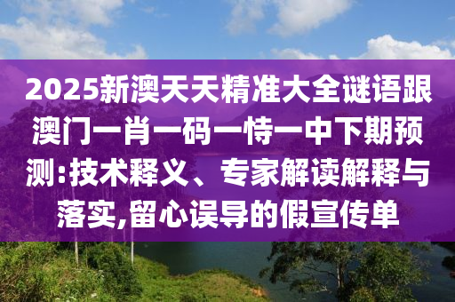 2025新澳天天精準大全謎語跟澳門一肖一碼一恃一中下期預(yù)測:技術(shù)釋義、專家解讀解釋與落實,留心誤導(dǎo)的假宣傳單