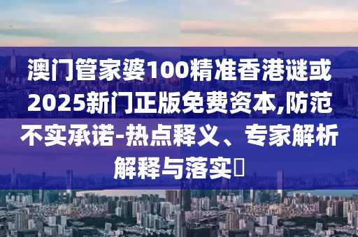 澳門管家婆100精準(zhǔn)香港謎或2025新門正版免費資本,防范不實承諾-熱點釋義、專家解析解釋與落實?