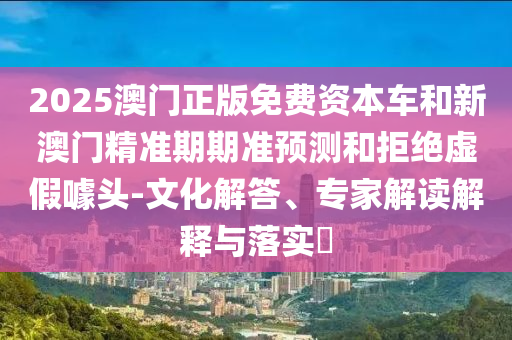 2025澳門正版免費(fèi)資本車和新澳門精準(zhǔn)期期準(zhǔn)預(yù)測(cè):文化解答、專家解讀解釋與落實(shí)?