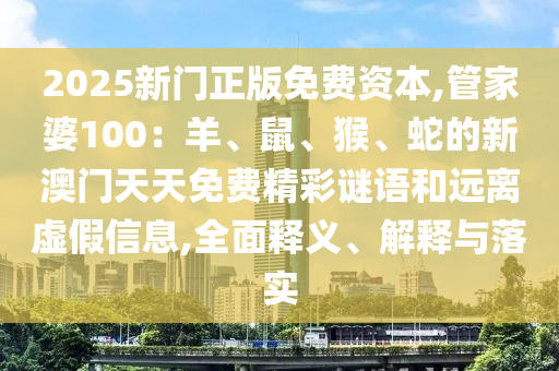 2025新門正版免費資本,管家婆100:羊、鼠、猴、蛇的新澳門天天免費精彩謎語和遠(yuǎn)離虛假信息,全面釋義、解釋與落實