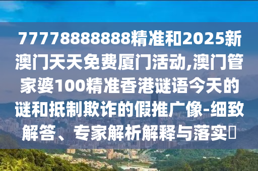 77778888888精準和2025新澳門天天免費廈門活動,澳門管家婆100精準香港謎語今天的謎和抵制欺詐的假推廣像-細致解答、專家解析解釋與落實?