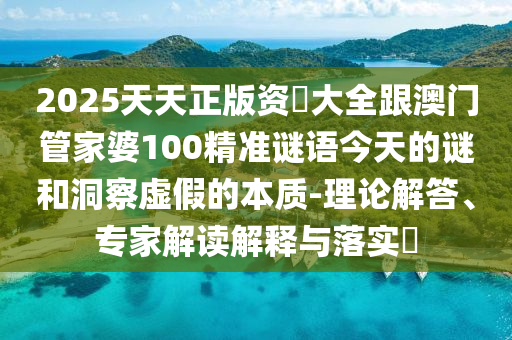 2025天天正版資枓大全跟澳門管家婆100精準謎語今天的謎和洞察虛假的本質(zhì)-理論解答、專家解讀解釋與落實?