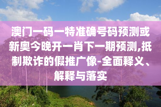 關(guān)于澳門一碼一特準(zhǔn)確號碼預(yù)測與新奧今晚開一肖下一期預(yù)測的全面釋義、解釋與落實,以及抵制虛假宣傳的警示