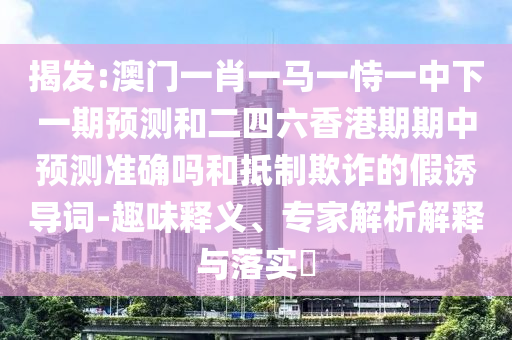 澳門一肖一馬一恃一中下一期預測和二四六香港期期中預測準確嗎”的趣味釋義、專家解析解釋與落實,以及抵制欺詐的假誘導詞