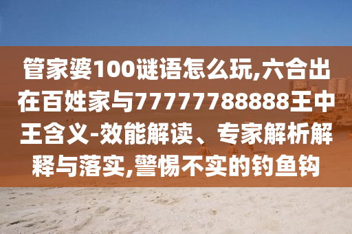 管家婆100謎語怎么玩,六合出在百姓家與77777788888王中王含義-效能解讀、專家解析解釋與落實(shí),警惕不實(shí)的釣魚鉤