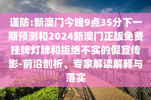 謹防:新澳門今晚9點35分下一期預測和2024新澳門正版免費掛牌燈牌和拒絕不實的假宣傳影-前沿剖析、專家解讀解釋與落實